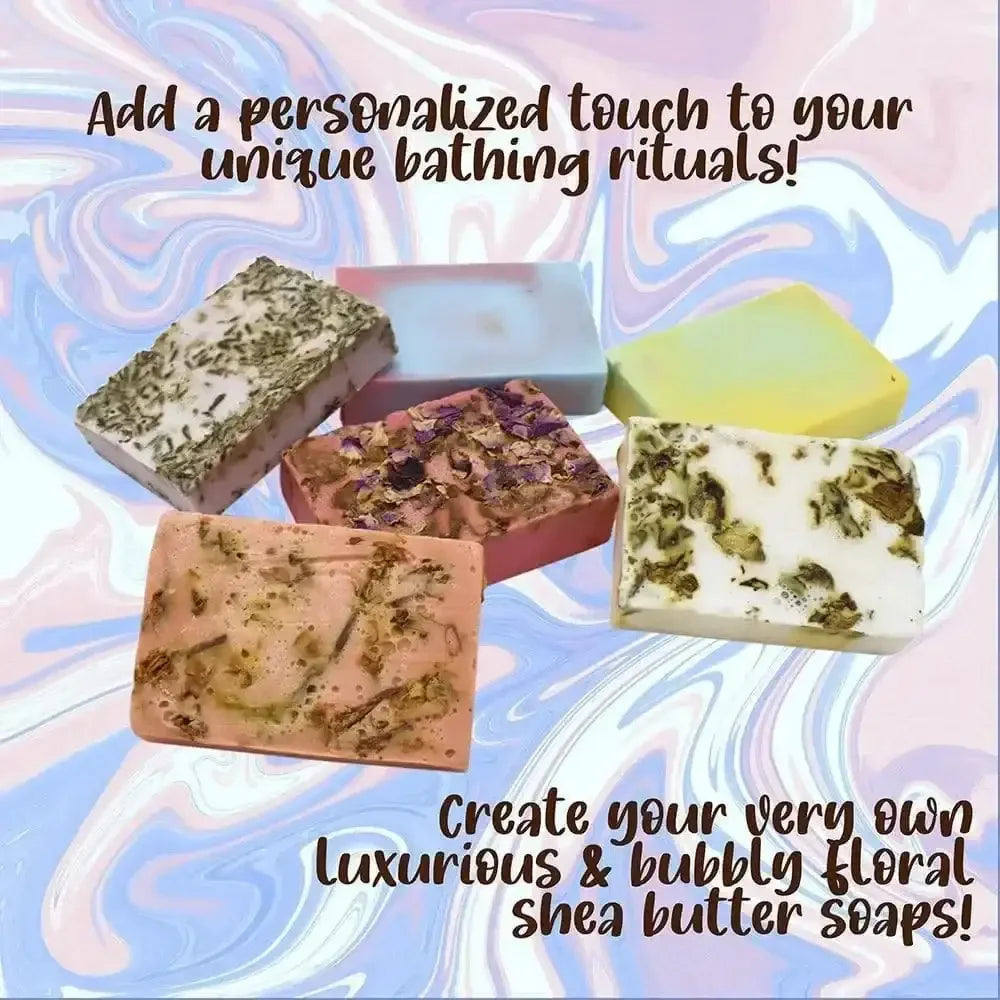All-in-One Soap Making Kit: Includes natural shea butter base, molds, colors, fragrances, tools, and a detailed instruction guide — no extra supplies needed!