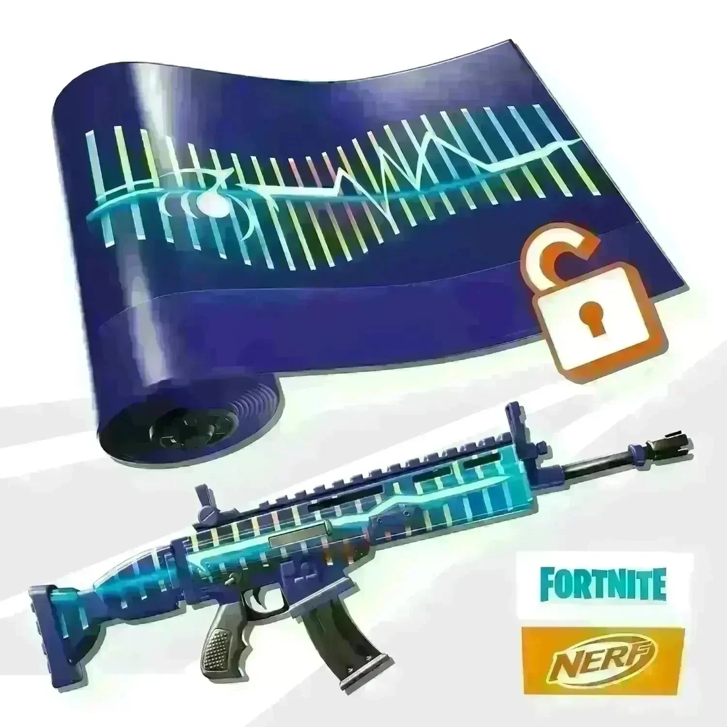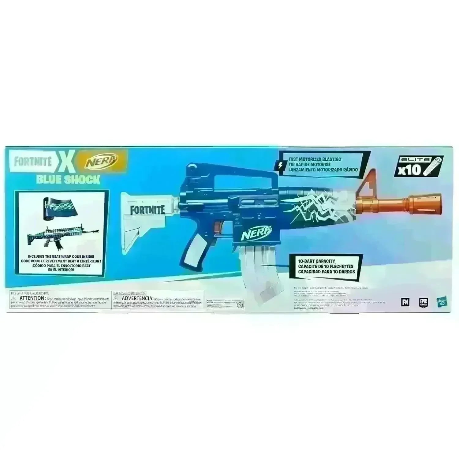 Step into the world of Fortnite and bring your in-game experience to life with the Nerf Fortnite Blue Shock Motorized Blaster! Inspired by the vibrant and iconic Blue Shock Wrap from Fortnite, this high-performance motorized dart blaster is built for serious action and non-stop adventure. Whether you're a Fortnite fan or a Nerf enthusiast, this blaster delivers a thrilling combination of fast-paced firing and authentic game-inspired design. Equipped with a motorized 10-dart clip, you can launch a rapid-fire barrage at your targets without missing a beat. The set includes 10 Official Nerf Elite foam darts and even features a bonus redeemable code to unlock The Beat Wrap in Fortnite, making this blaster a must-have for fans of the game. Designed for quick reloads, powerful blasting, and hours of backyard or indoor fun, the Nerf Fortnite Blue Shock offers a premium play experience that captures the spirit of Fortnite in every shot.