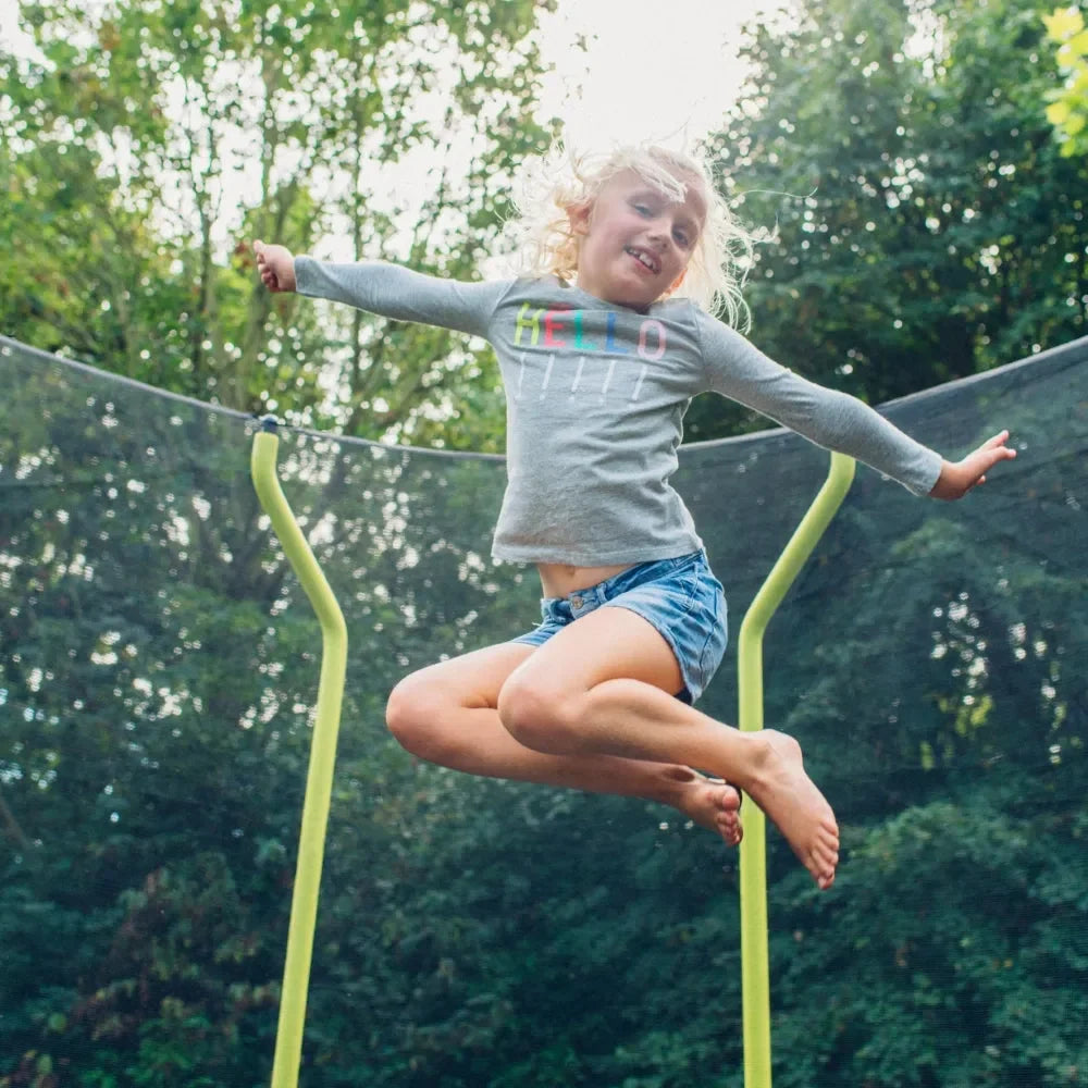 The Plum 12ft Wave Springsafe Trampoline and Enclosure offers a fun and secure bouncing experience with its Springsafe technology, ensuring jumpers are protected from direct contact with the springs and frame. The sturdy steel frame is galvanized inside and out for enhanced durability and rust resistance, while a reinforced metal top rim provides added stability. Thick safety padding covers the frame and springs, ensuring extra protection during use. Designed to support physical activity, balance, and coordination, this trampoline is perfect for active outdoor play while giving parents peace of mind.