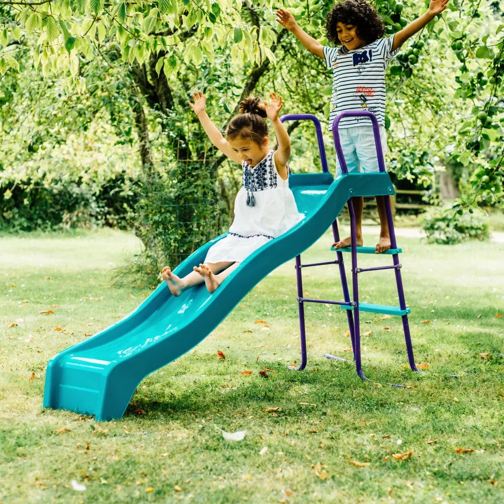The Plum Metal Haumea Slide is a fantastic addition to any garden, providing hours of active outdoor fun for children. This freestanding 7ft slide encourages kids to climb and slide all year round, promoting physical activity and coordination. Constructed from powder-coated steel, it offers long-lasting durability and protection against rust. The slide features a sturdy four-leg design with ground anchors for enhanced stability, ensuring a secure play experience. A three-rung step system allows easy access, while the moulded slide design ensures a safe and comfortable grip. Designed with safety and quality in mind, this metal slide is perfect for young adventurers.