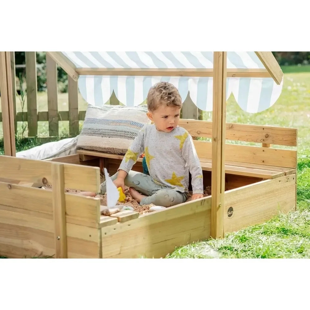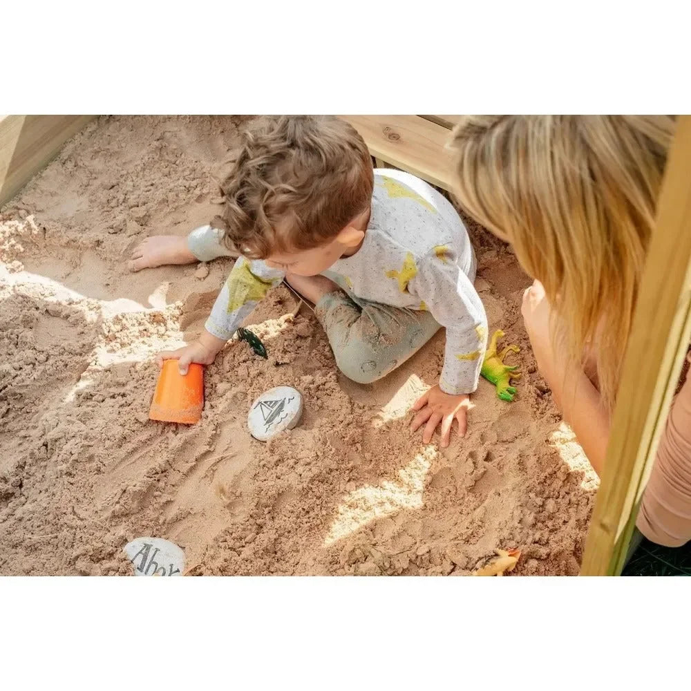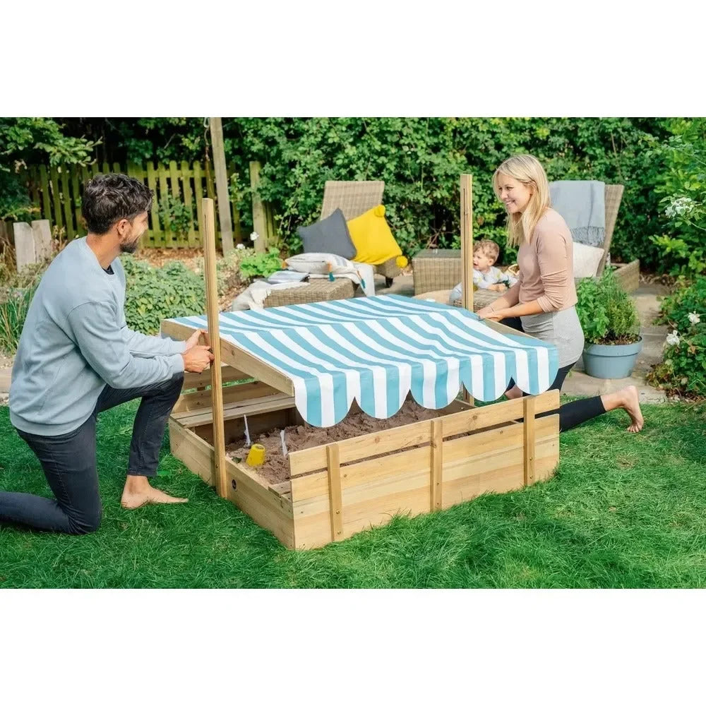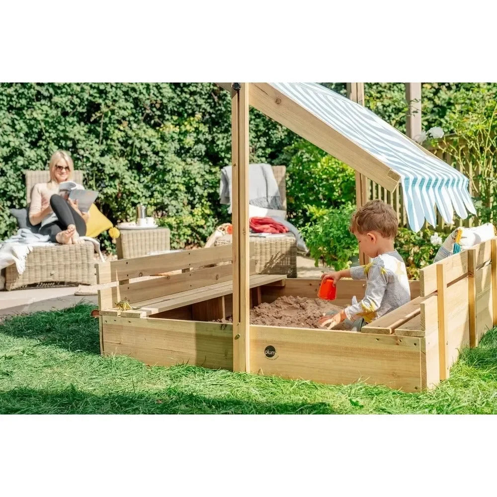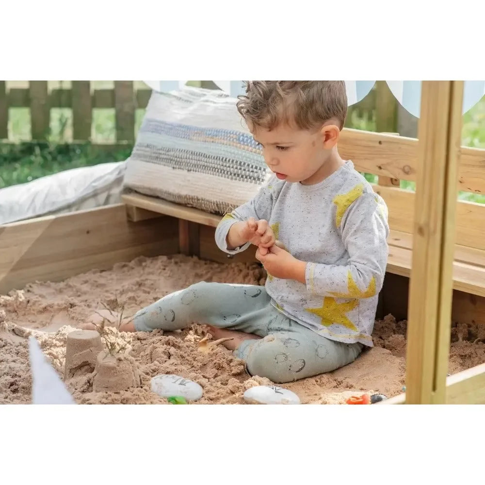 The Plum Wooden Sandpit with Canopy in Natural is a beautifully designed outdoor play feature that provides children with a spacious and engaging environment for endless fun. Made from high-quality, sustainably sourced wood with a natural finish, this sturdy sandpit is built for durability and long-lasting use. It features a UV-protective canopy that offers shade on sunny days while helping to keep the sand clean and dry. The sandpit includes bench seats for added comfort, making it perfect for social and creative play. Designed for children aged 18 months and above, this sandpit encourages imaginative outdoor adventures, enhances motor skills, and seamlessly blends into any garden or backyard.