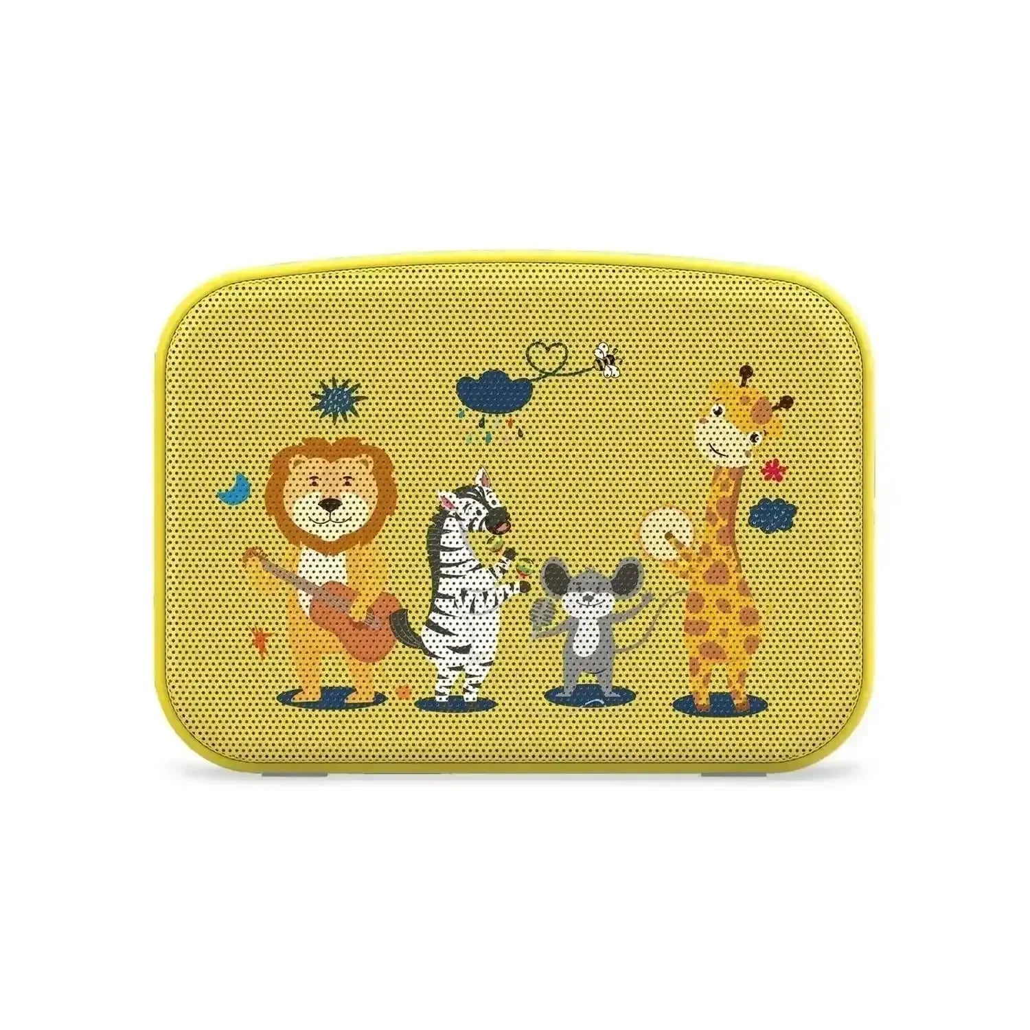 The Saregama Carvaan Mini Kids in a vibrant Baby Yellow shade is a uniquely designed portable audio player crafted especially for children, blending entertainment, education, and creative fun in one compact device. This kid-friendly digital music player comes with a wireless Bluetooth microphone offering five distinct voice modulation options—baby voice, normal voice, male-to-female, female-to-male, and a playful monster voice—encouraging imaginative storytelling and interactive play. Pre-loaded with over 300 stories, including folk tales and fairy tales, plus 80 classic rhymes in both Hindi and English, this device supports phonetic-based learning with 15 educational contents designed to boost language skills, comprehension, and auditory learning. Additionally, the Carvaan Mini Kids includes 30 mantras and devotional songs, providing a wholesome audio experience that nurtures cultural values alongside entertainment.