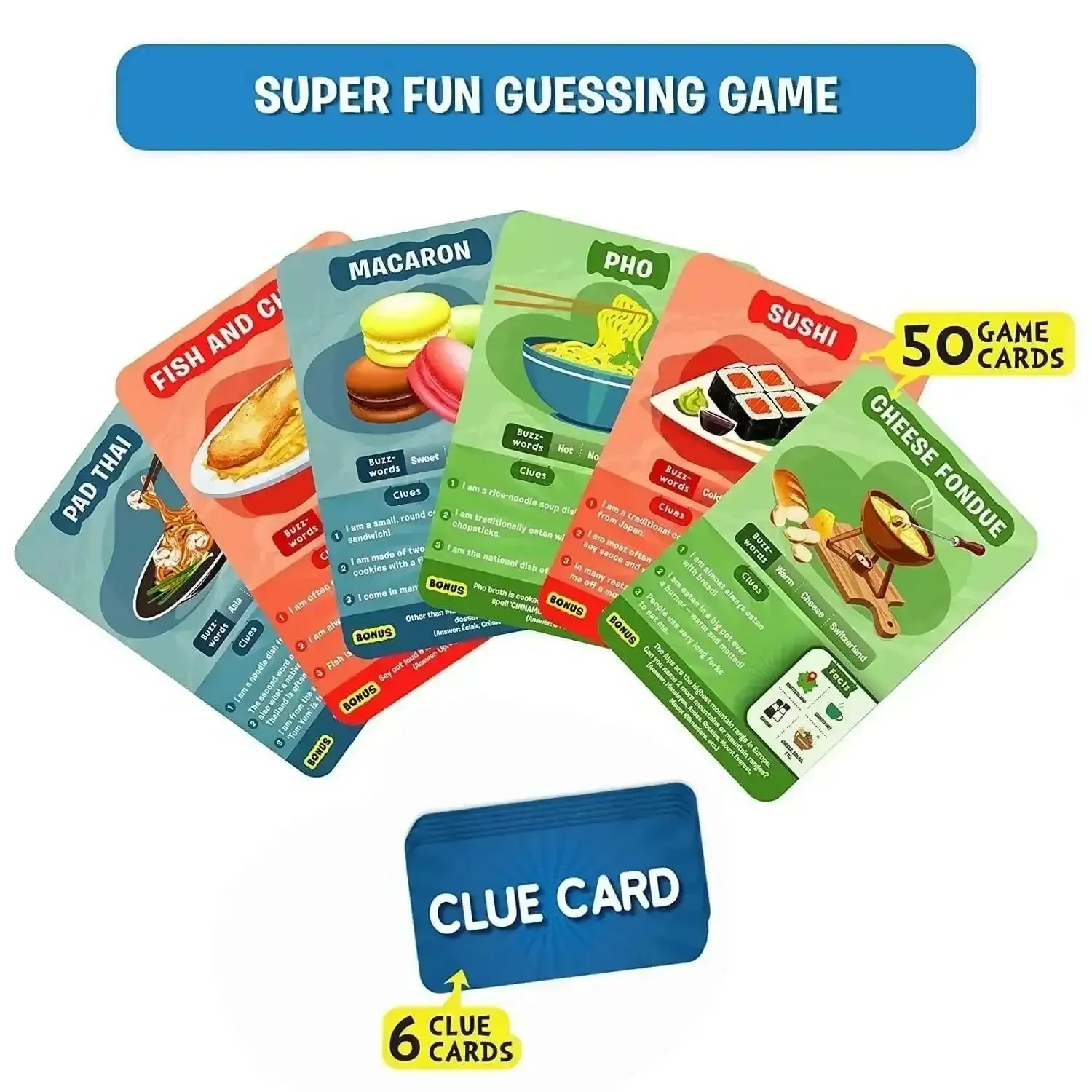 Global Food Theme: Features 50 Game Cards showcasing popular and traditional foods from around the world, fostering cultural awareness and curiosity.