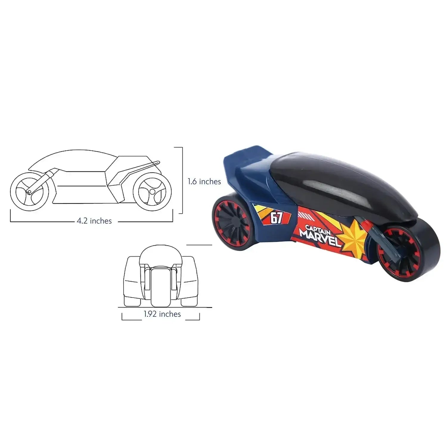 The Captain Marvel motorbike toy is not just visually appealing with its iconic color scheme and detailing, but also action-packed thanks to its pull-back mechanism—simply pull it back and release to watch it zoom forward! With no batteries required, this bike is energy-efficient and always ready for fun. Its lightweight design makes it easy to carry and play with both indoors and outdoors, and it's perfectly sized for small hands to grasp, push, and steer.