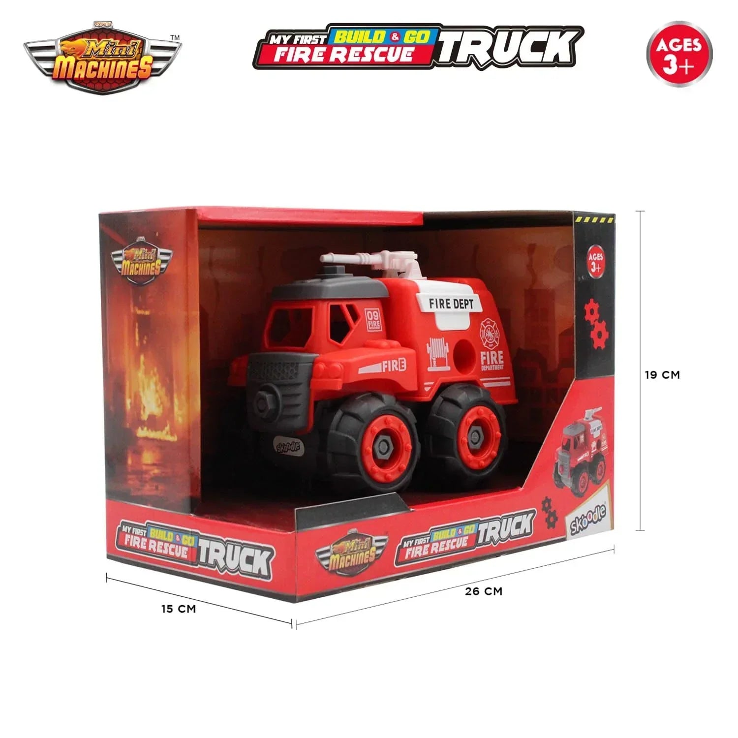 Skoodle Mini Machines Build & Go Fire Extinguisher Vehicle Truck with T-Shape Screwdriver – Educational & Pretend Play Toy