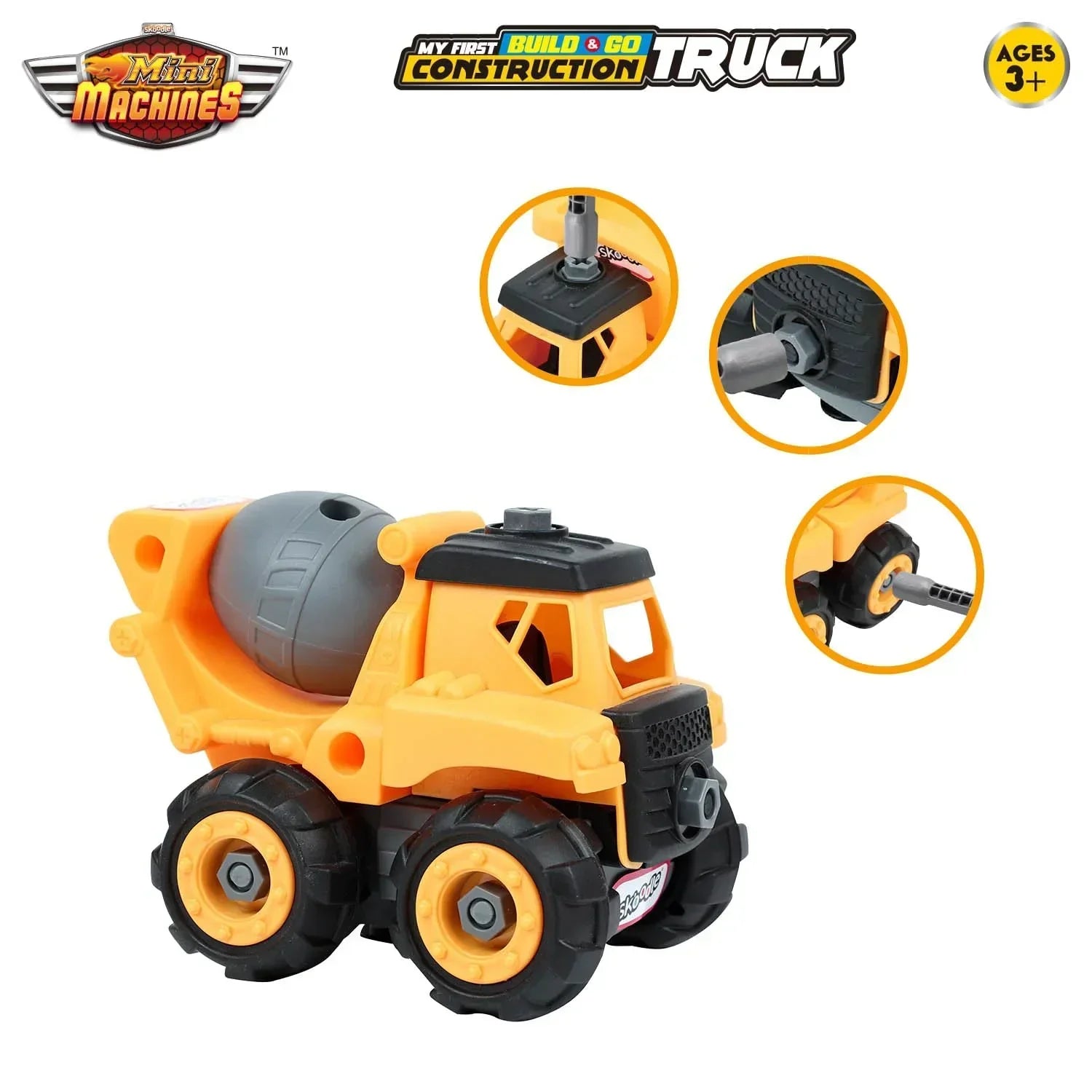 Skoodle Mini Machines Build & Go Concrete Mixer Truck with T-Shape Screwdriver – DIY Construction Educational Toy for Kids (Multicolor, Age 3+)