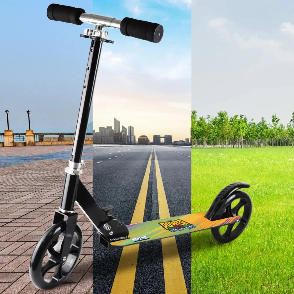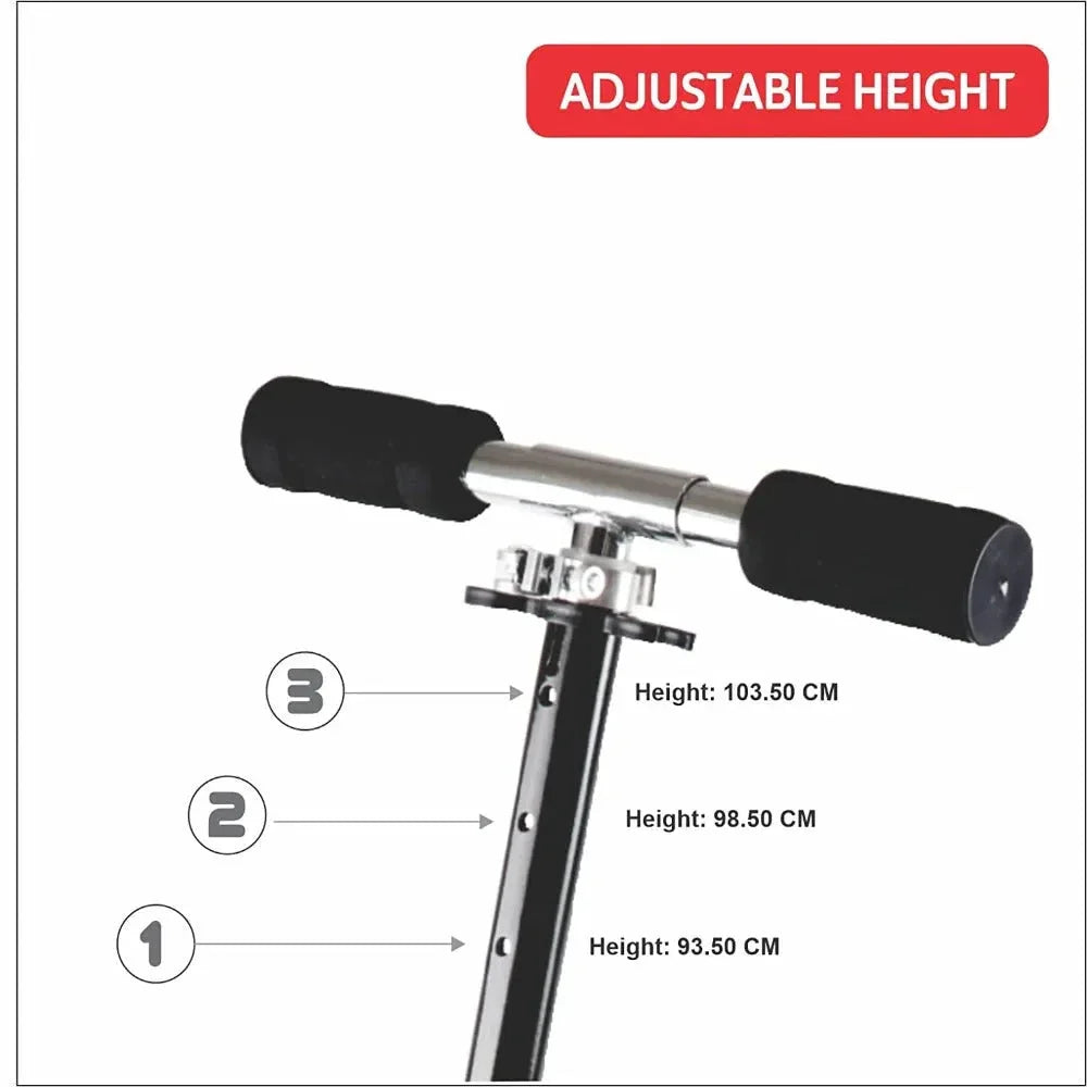 Skoodle Power Play Whoosh 2 Wheel Skate Scooter | Foldable Metal Scooter for Kids | Adjustable Height, Side Stand, Non-Slip Deck | Age 6+