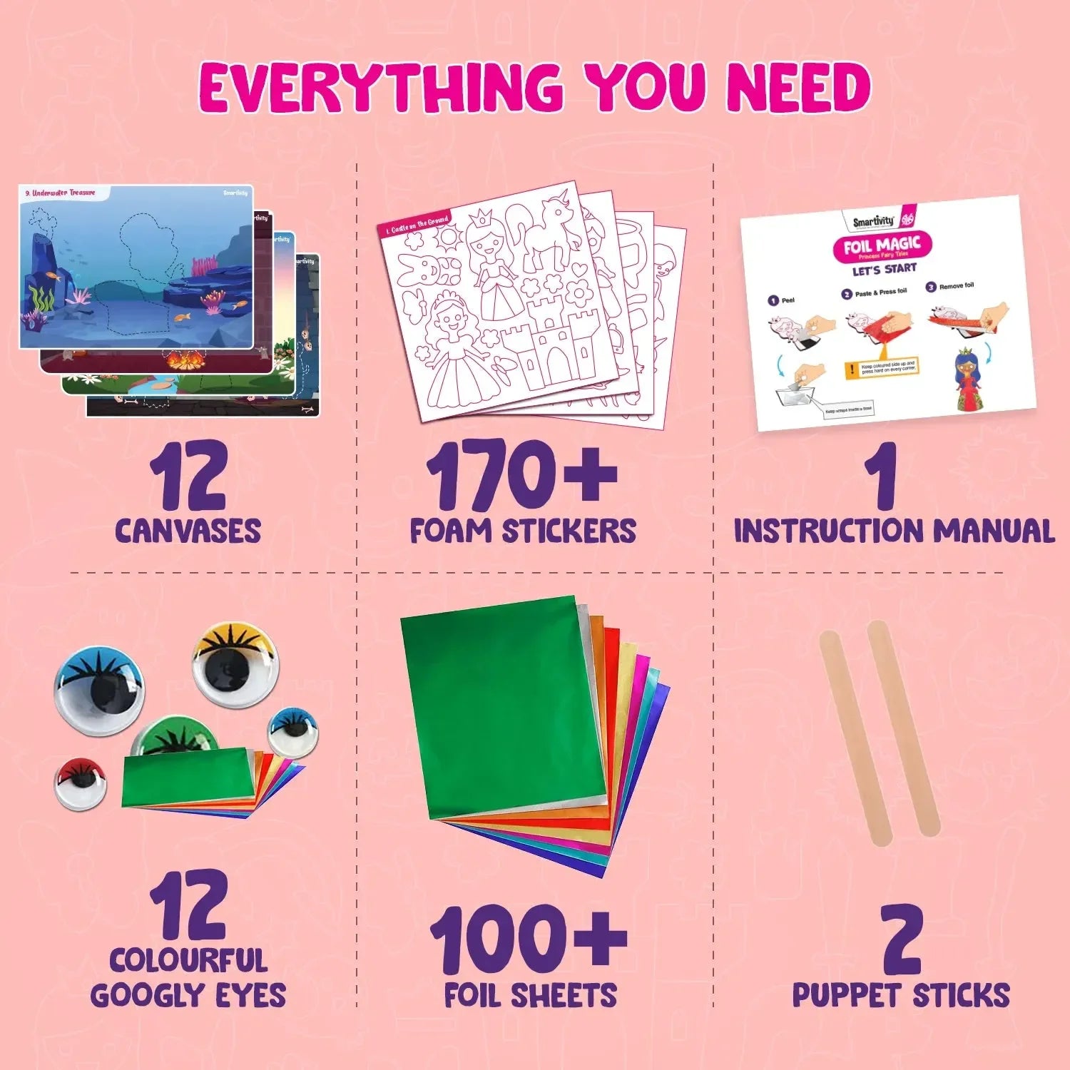 Smartivity Foil Magic – Princess Fairy Tales | DIY Activity Kit for Girls & Boys Ages 4–8 | 129+ Parts | Foil Sheets, Puppets, Picture Canvases | Learn Through Storytelling & Crafting