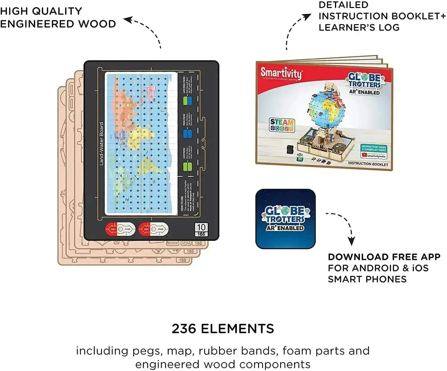Smartivity Globe Trotters AR Enabled | STEM Globe DIY Kit for Kids 8-14 | Augmented Reality Educational Toy