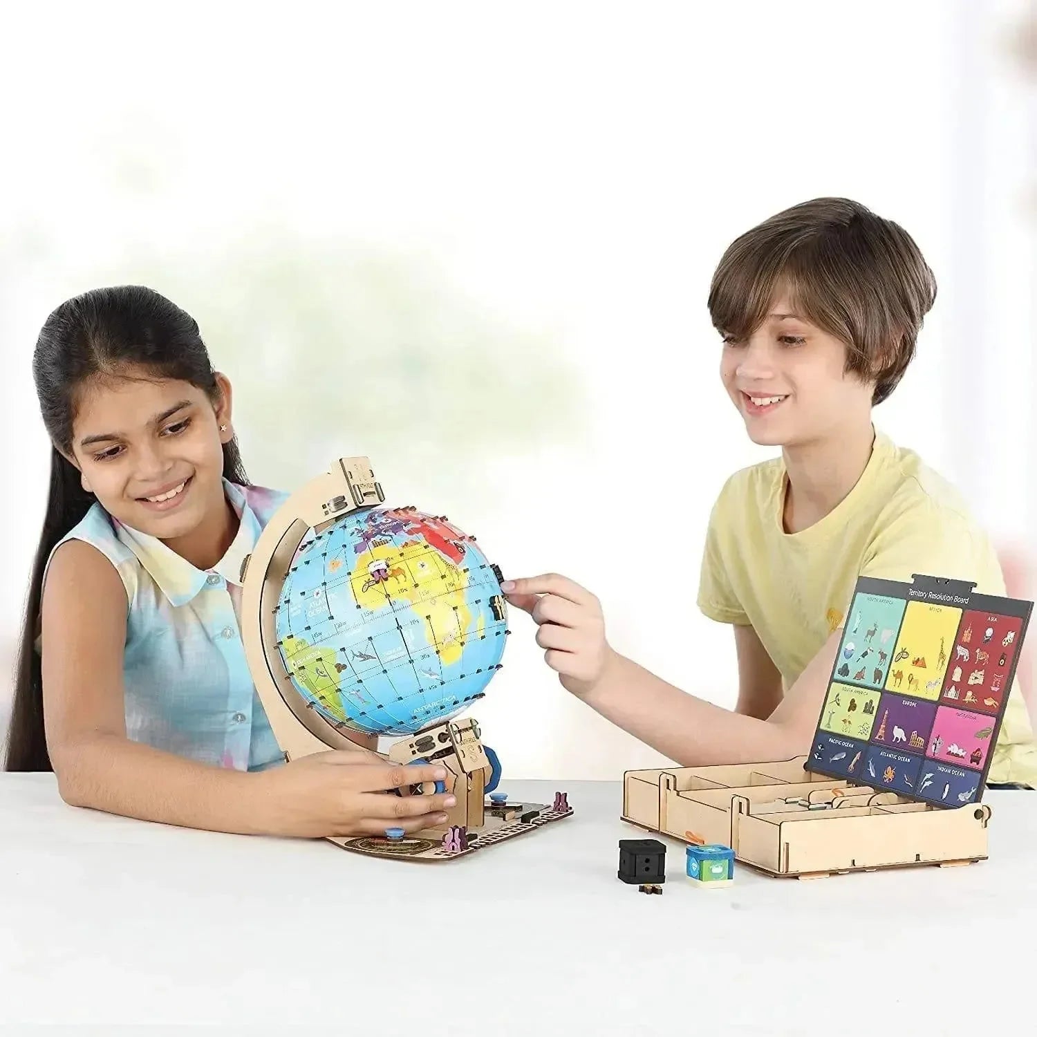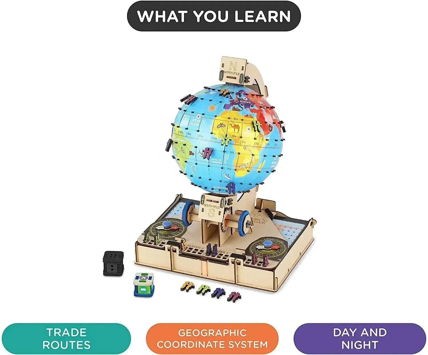 Engage children in hands-on construction with mechanical rotator mechanism and precise latitude-longitude spinners.
