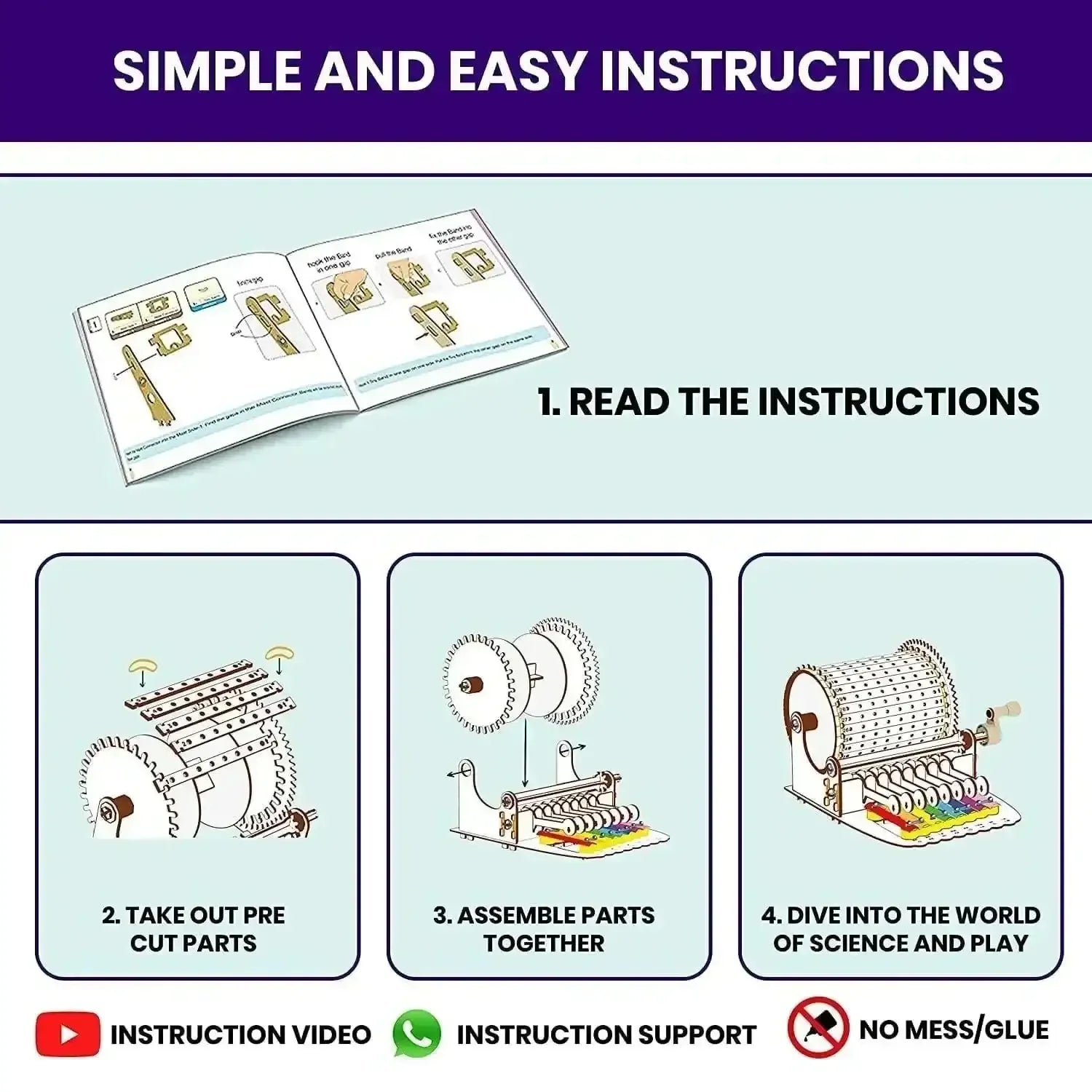 Introduce your child to the world of music and mechanics with the Smartivity Mechanical Xylofun Music Machine, a unique and educational STEM-based DIY toy designed to blend the joy of music with core principles of science and engineering. This innovative hands-on kit allows children to build their own xylophone-style music machine from scratch using 237 pre-cut engineered wood pieces and real mechanical components. Ideal for children aged 8 to 14, this learning toy introduces fundamental STEAM concepts such as vibrations, harmony, ratchet-pawl mechanisms, and momentum transfer—transforming complex theories into fun, play-based learning.