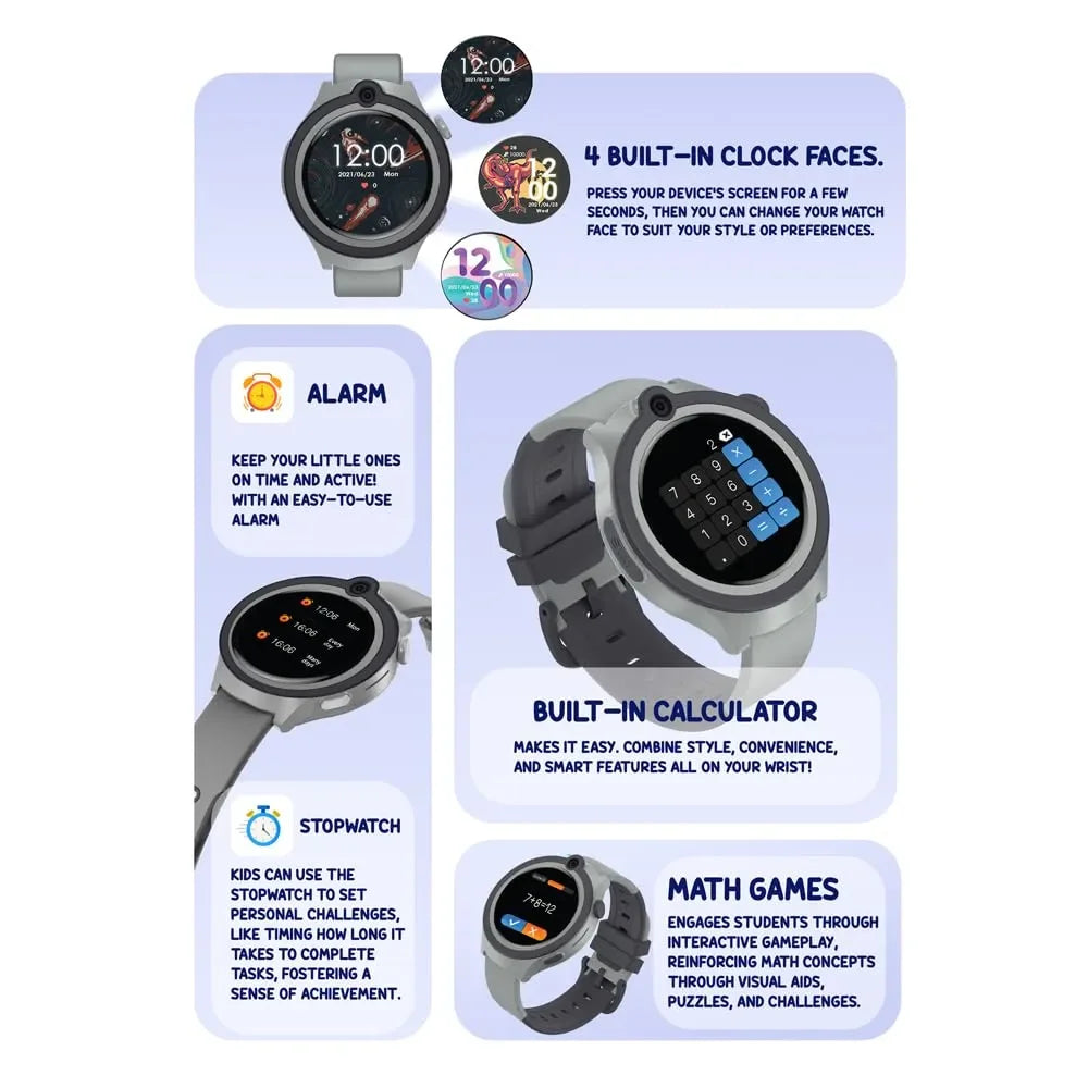• Fun Games & Productivity Tools: Features games, calculator, alarm, and voice messaging to educate and entertain.