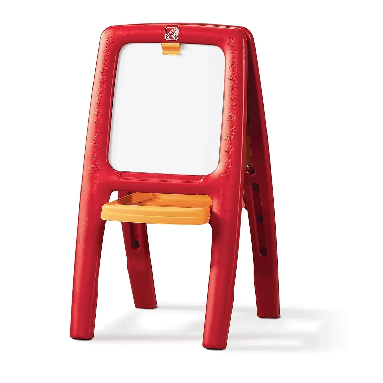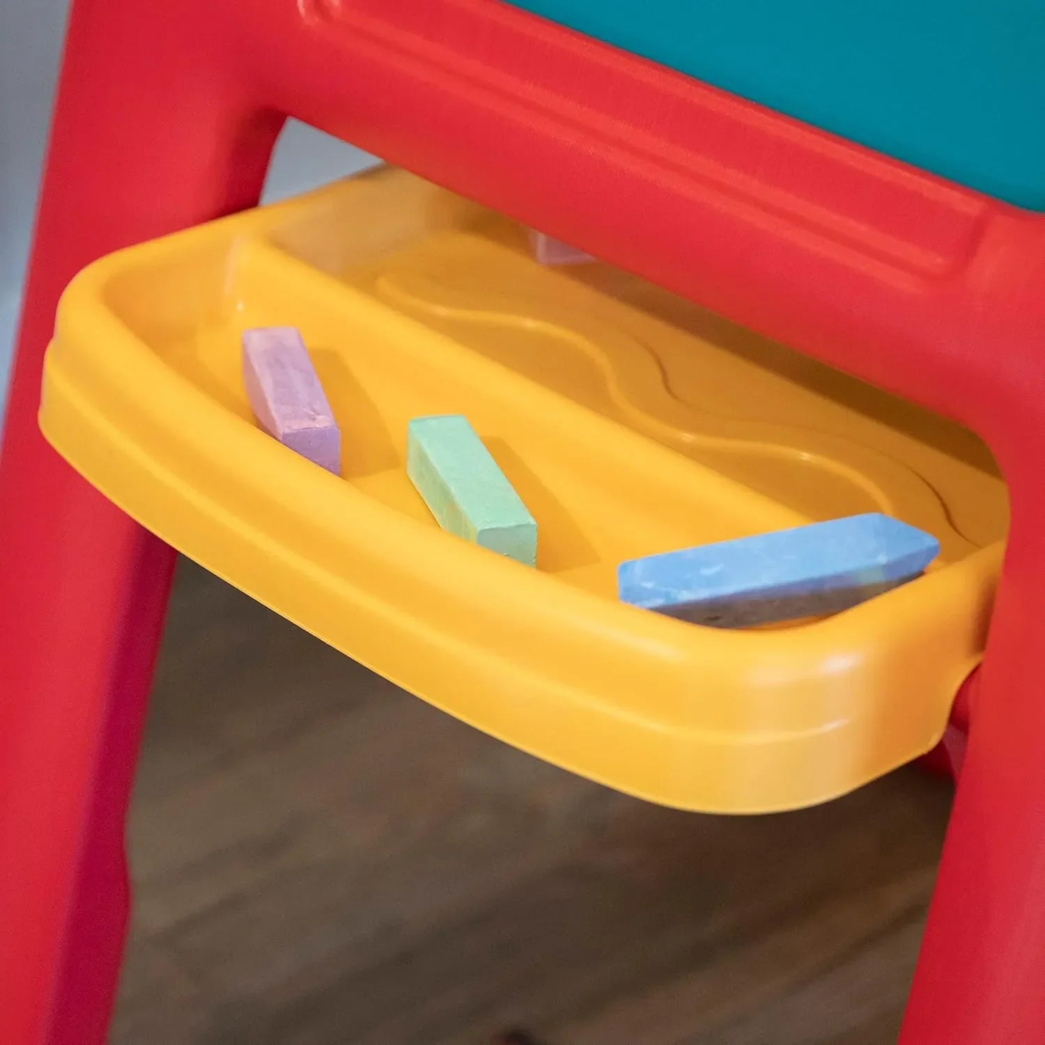The Step2 Easel for Two is a versatile and engaging art station designed to spark creativity in young artists. Featuring a two-sided design with a chalkboard on one side and a magnetic dry erase board on the other, it allows for endless drawing, writing, and interactive play. The included 94-piece soft foam magnet set adds an educational touch, while the removable storage bins and large tray keep supplies organized and within reach. With an easy-to-clean surface and a sturdy, durable build, this easel is perfect for solo play or creative fun with friends. Ideal for kids aged 3 and up. Made in the USA with some imported parts.