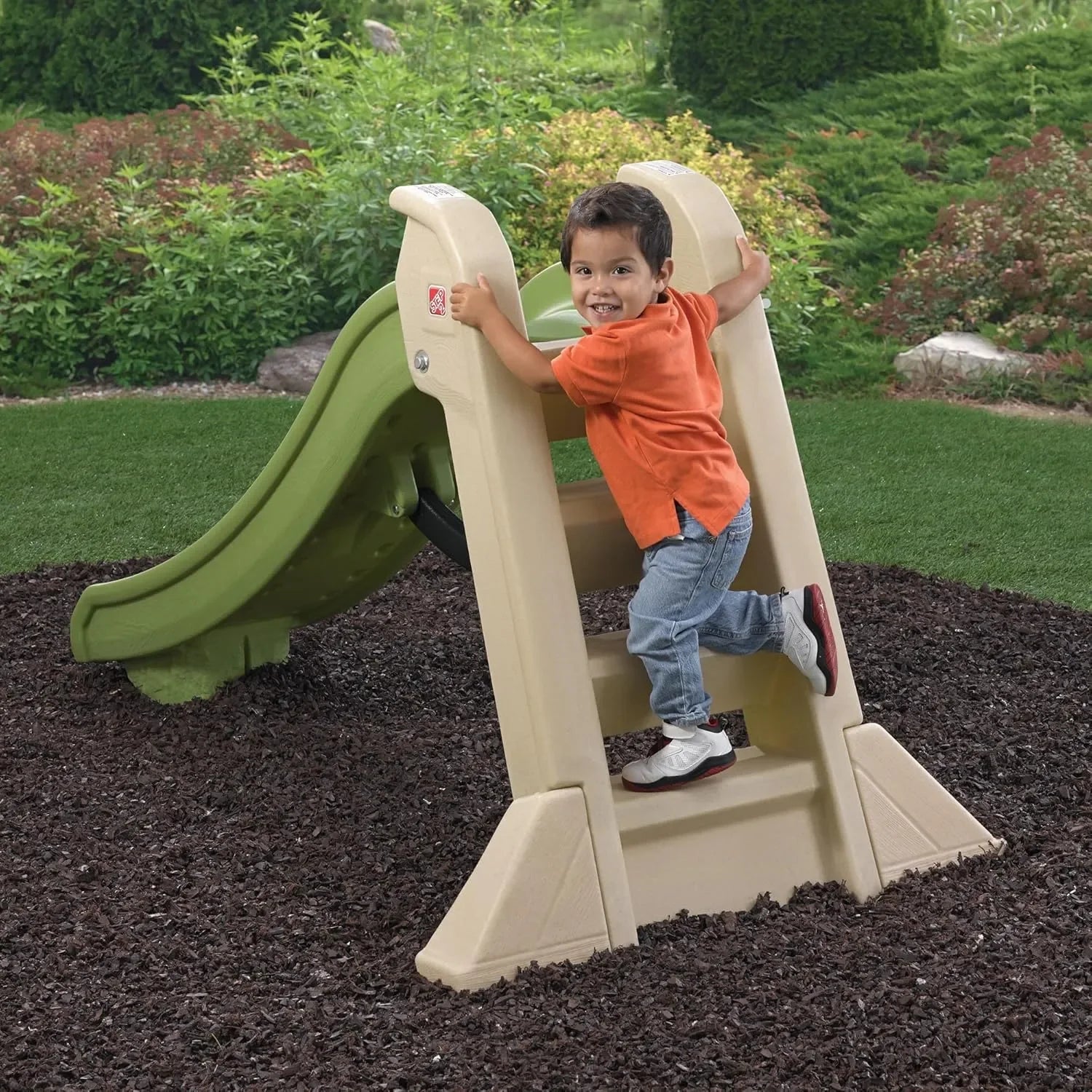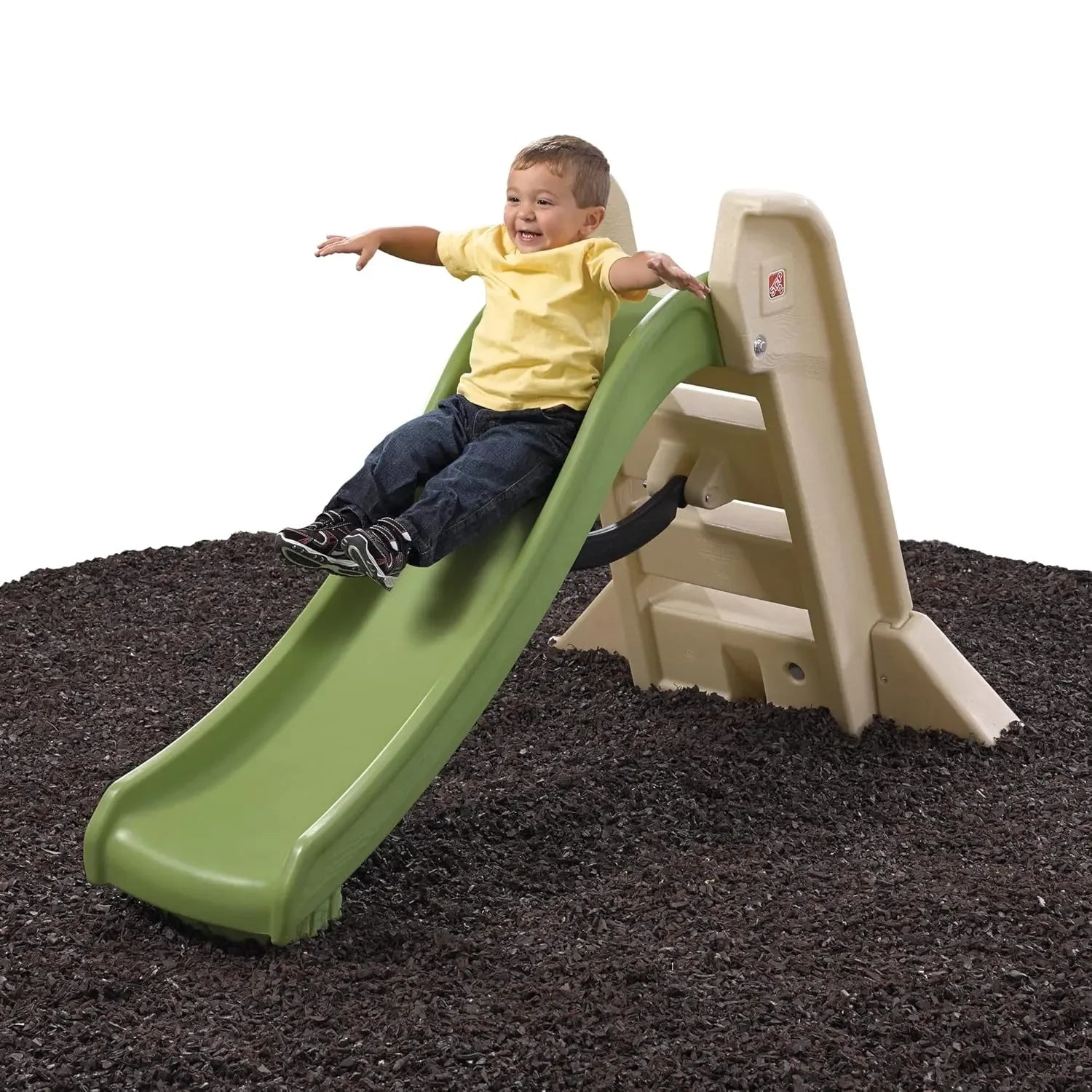 The Step2 Naturally Playful Big Folding Slide offers endless fun for little ones while blending seamlessly into any backyard with its neutral design. Featuring a sturdy ladder with easy-grip handles and high side rails for added safety, this durable slide helps develop gross motor skills as kids climb and glide down. Designed for convenience, it folds down easily for storage when not in use. Built to last with Step2's EverTough construction, it ensures years of active play. Ideal for toddlers and preschoolers, this classic slide is perfect for both outdoor and indoor fun. Made in the USA.