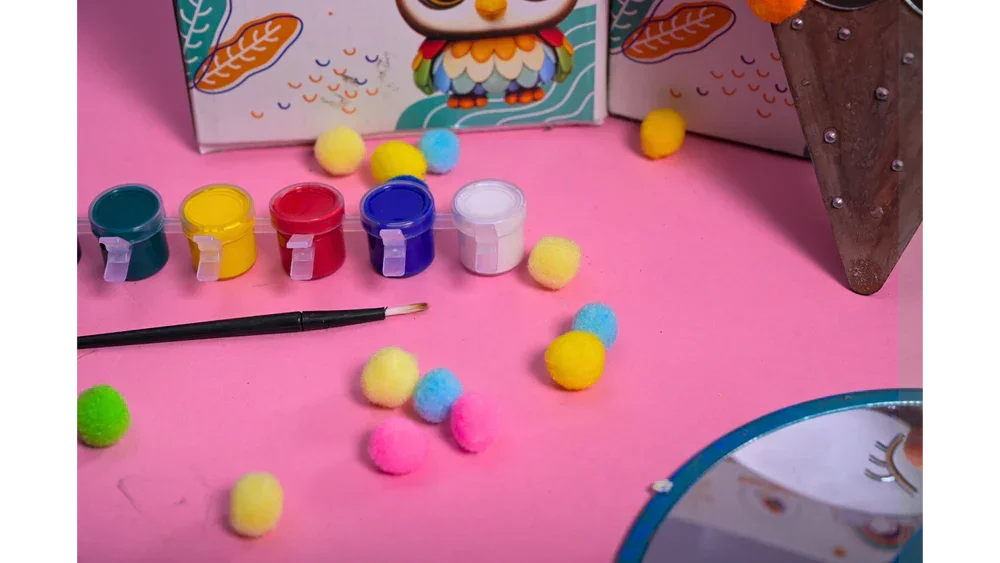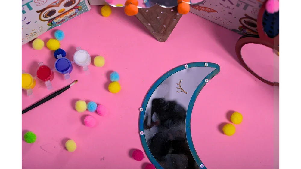 Teeny Tiny DIY Mirror Decorating Kit for Kids – Set of 3 | Paint, Glitter & Pom Poms | iLearnNGrow