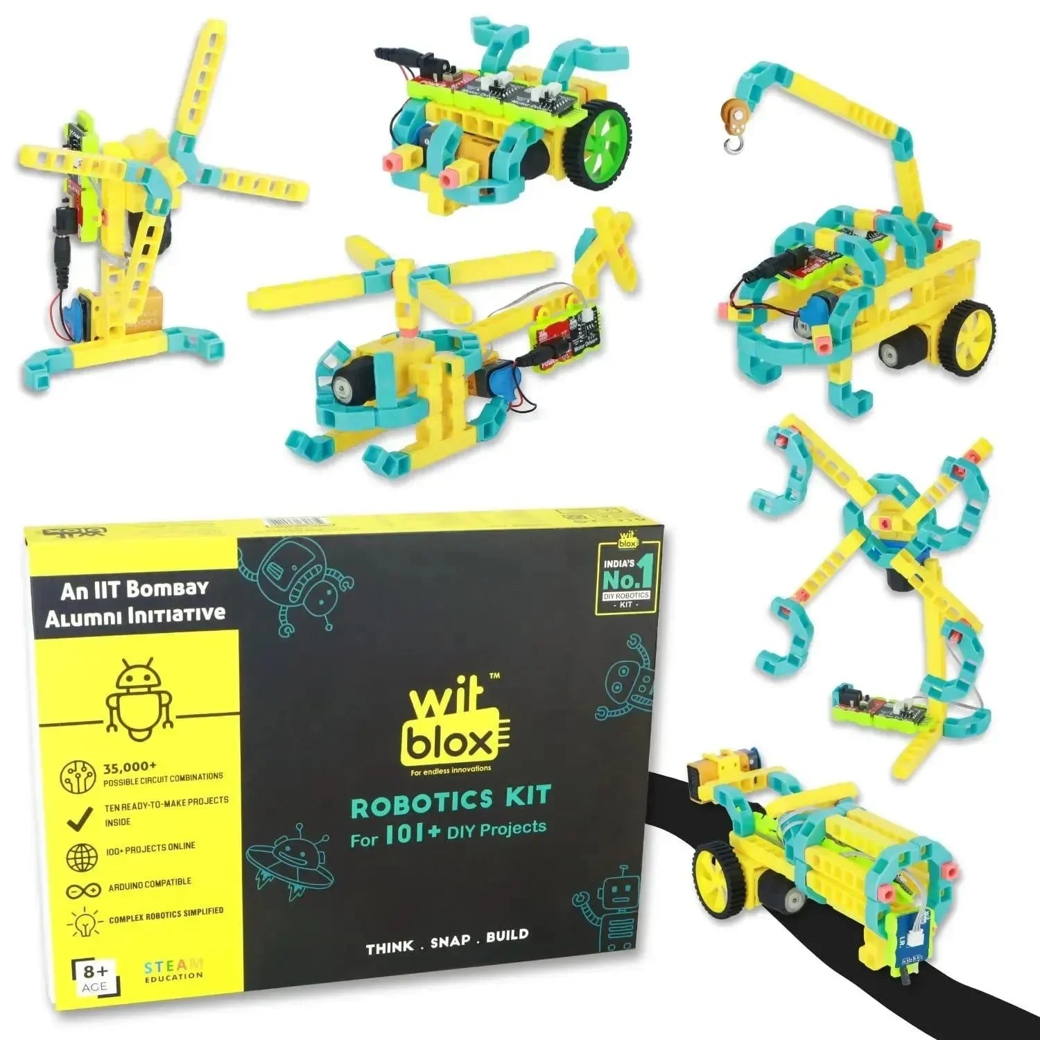Unlock your child’s full potential with the WitBlox DIY Robotic Science Kit—a premium, STEM-accredited educational toy designed to introduce children aged 8 and above to the fascinating world of robotics, electronics, and physical computing. This all-in-one modular kit includes over 134 high-quality parts, 55+ plug-and-play electronic blocks, and interlocking mechanical bricks that let kids build over 101+ logic-based robotics and IoT projects without the need for soldering. From beginner-level circuits to complex gesture-controlled systems, this kit offers an immersive, screen-free learning experience, nurturing problem-solving, logical thinking, programming, and cognitive skills. Whether your child is assembling their first buzz alarm, creating smart sensors, or exploring automation, this DIY science kit provides the tools, knowledge, and support to inspire creativity and real-world innovation. With access to 2 free one-on-one live expert sessions (worth ₹1500), a 12-month warranty, and compatibility with Arduino and Raspberry Pi, the WitBlox kit is not just a toy—it’s a launchpad for tomorrow’s innovators.