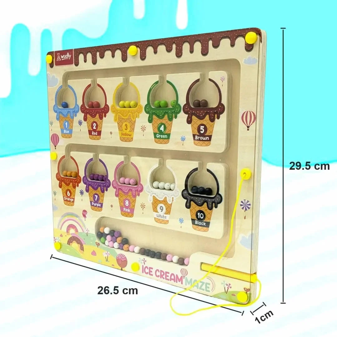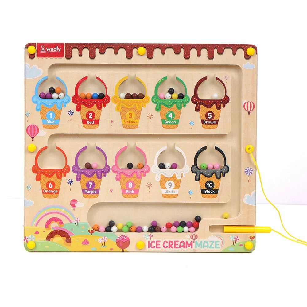 Indulge in a sweet learning adventure with the Wudly Magnetic Maze Ice Cream! This delightful toy combines the fun of a maze with the excitement of colors and numbers. Children will use the magnetic wand to guide colorful "sprinkles" through the ice cream scoops, matching them to the correct number and color. Not only is it entertaining, but it also helps develop fine motor skills, hand-eye coordination, and color and number recognition. Made with high-quality, child-safe materials, the Wudly Magnetic Maze Ice Cream is the perfect educational toy for little ones. Get ready for a "maze-tastic" adventure!